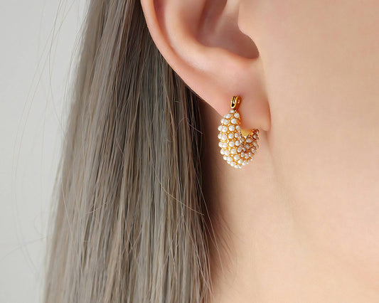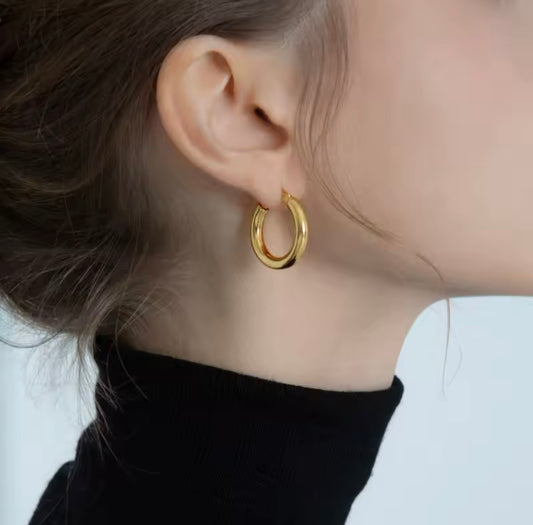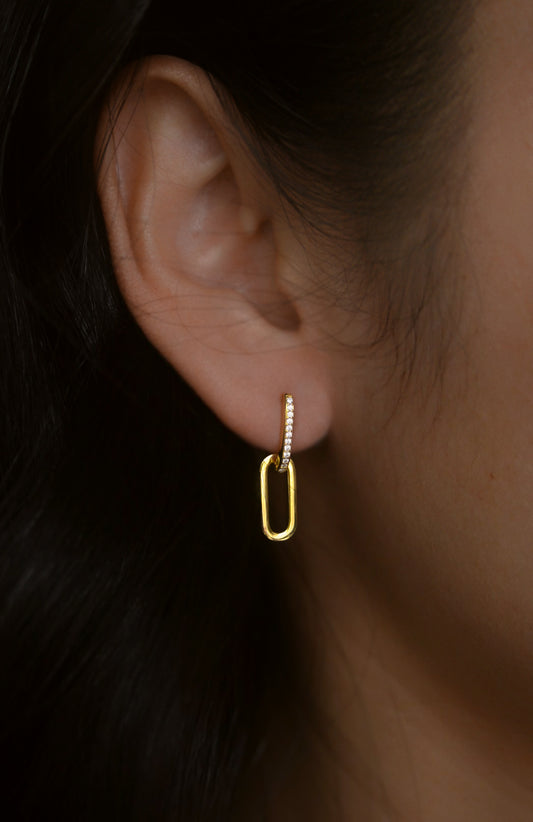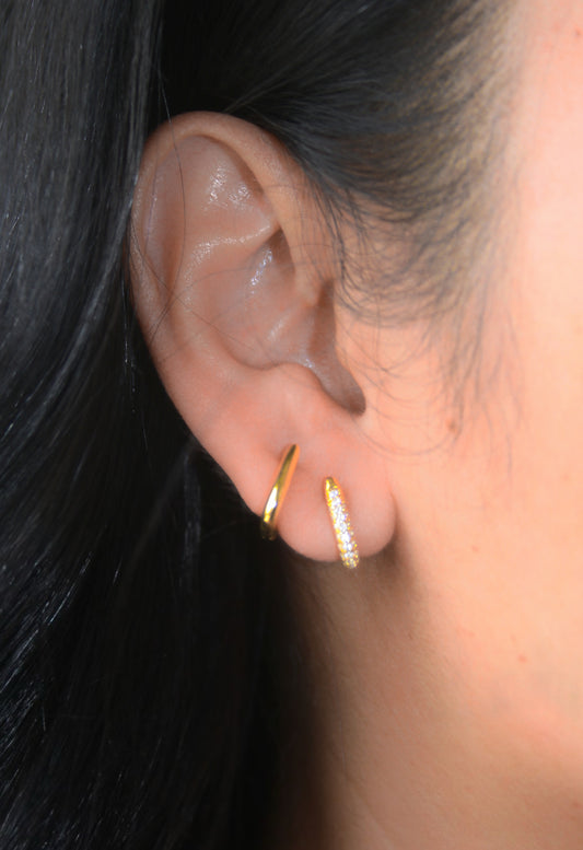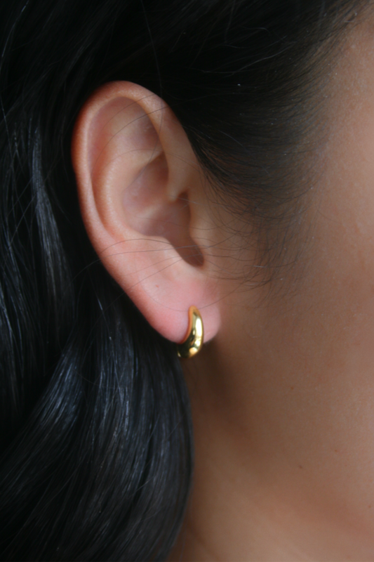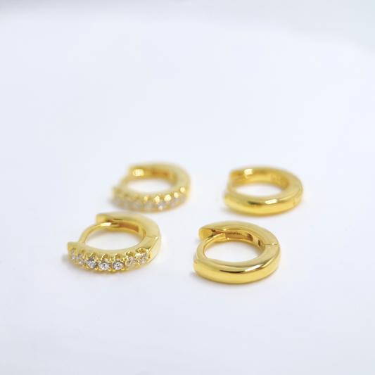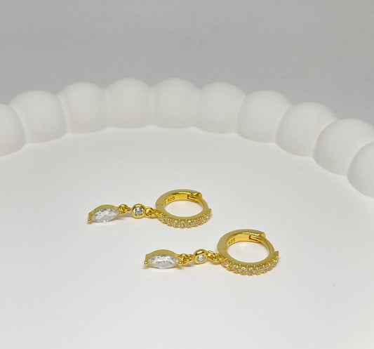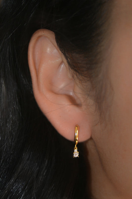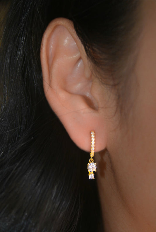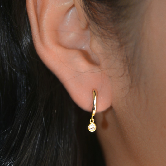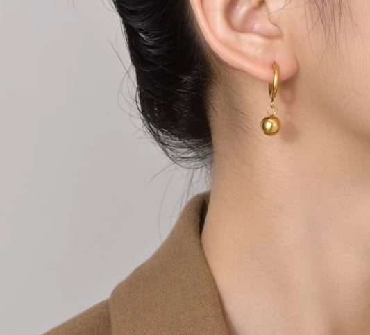 Gold Hoop Earrings with Polished Sphere Drop Earrings