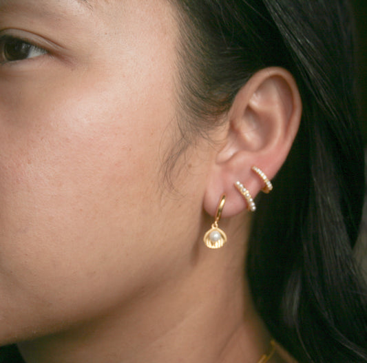 Pavé and Pearl Double Row Hoop Earrings