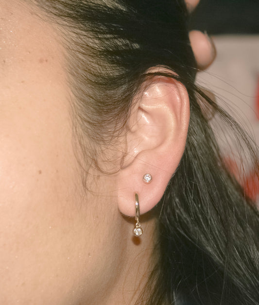 Pavé Bezel Drop Huggie Earrings